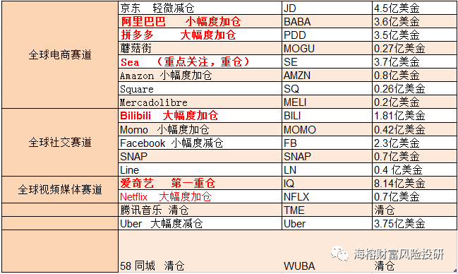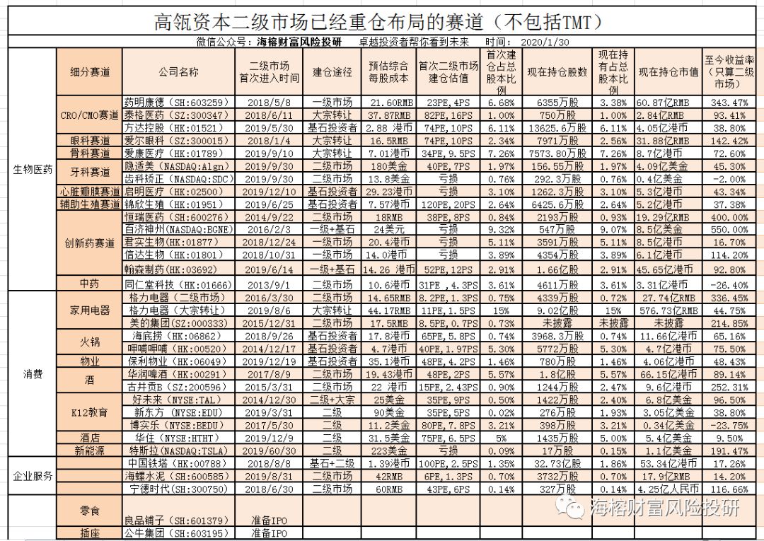 高瓴资本的详细仓位统计: