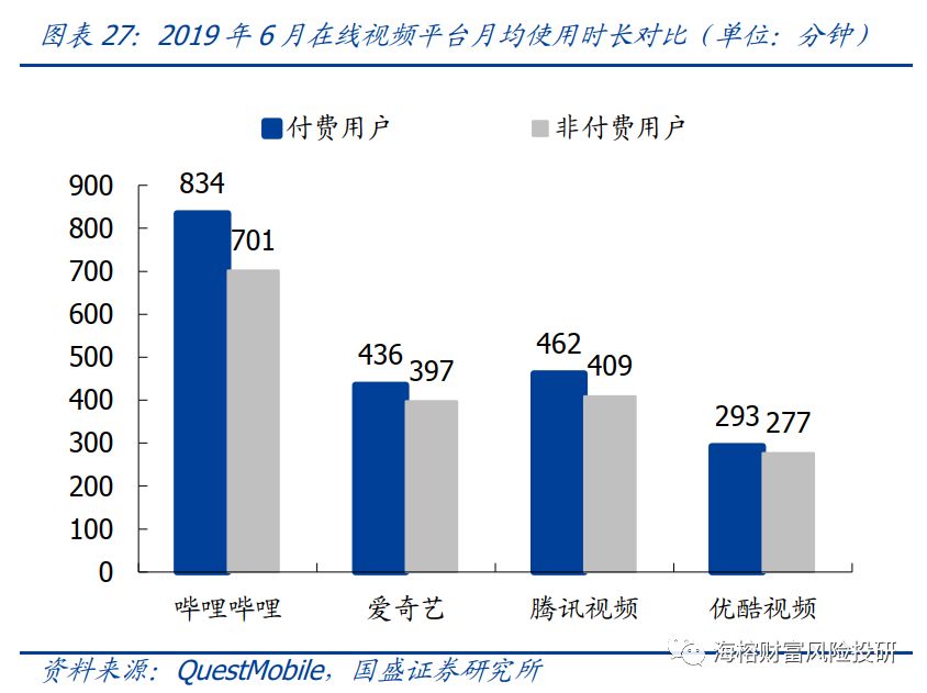 哔哩哔哩是社区,社区是人和人之间思维逻辑的碰撞,粘性最强,哔哩哔哩在国内视频UGC 社区方面做的是最优秀的,哔哩哔哩的月活使用时长对比,远远超过优爱腾。
