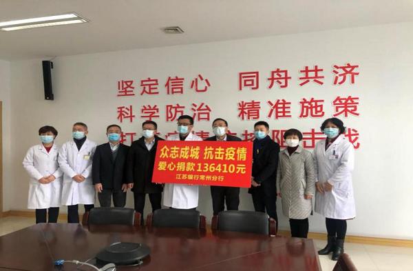 近期,江苏银行常州分行相关人员赶赴常州市第三人民医院,慰问奋战“疫”线的医护人员,献上爱心捐款。
