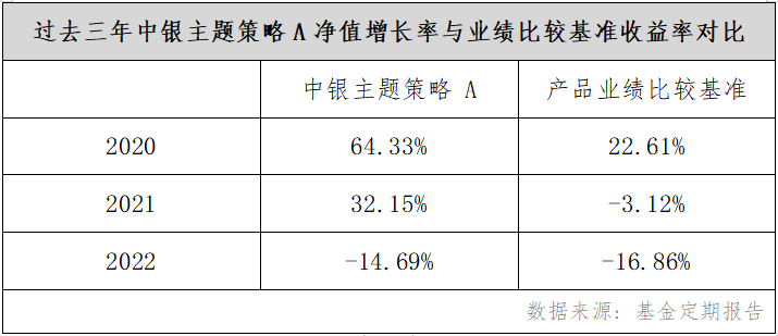从长期收益上看,截至2022年12月31日,在黄珺的管理下,中银主题策略A近三年累计回报为85.27%,同期业绩基准为-1.24%,超额收益十分能打!(数据来源:基金定期报告)。
